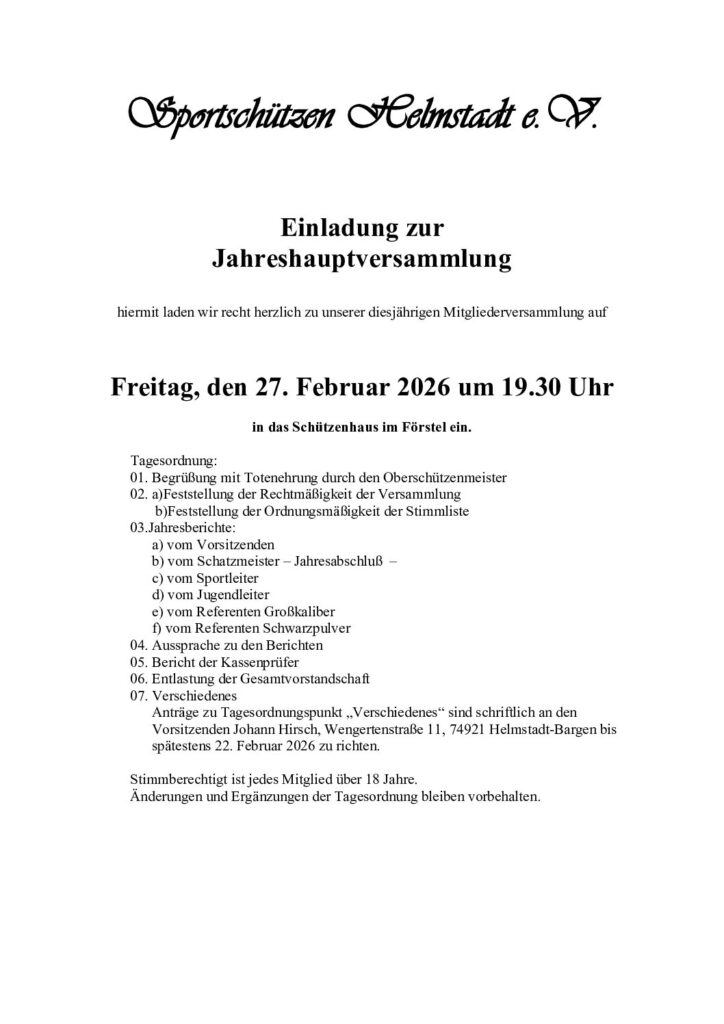 Einladung Grümpelschießen 2025